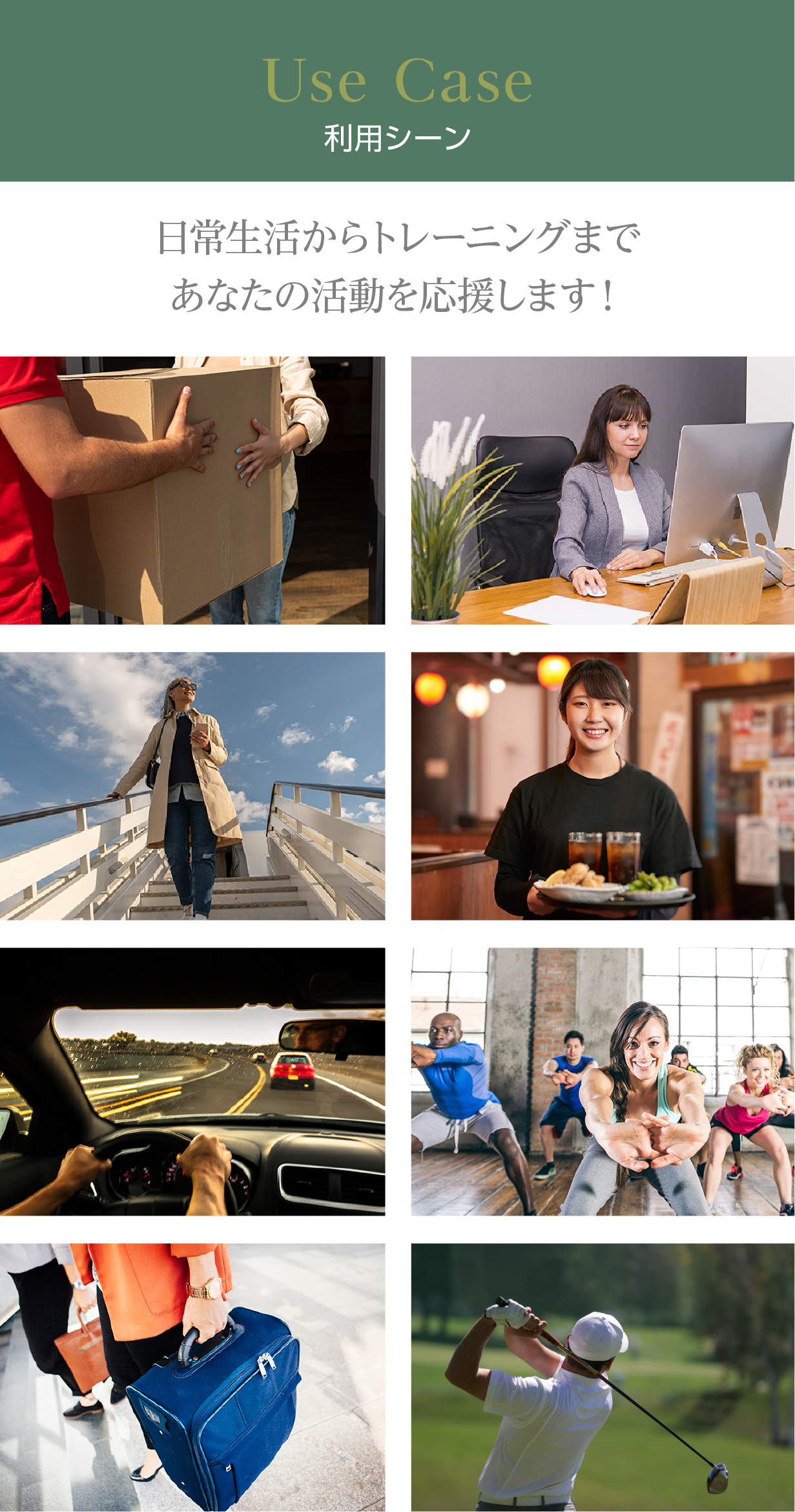 だから仕事からトレーニングまで、いつでも、どんなシーンでも使用可能です。普段から腰でお悩みの方には是非お試しいただきたいサポーターです!
